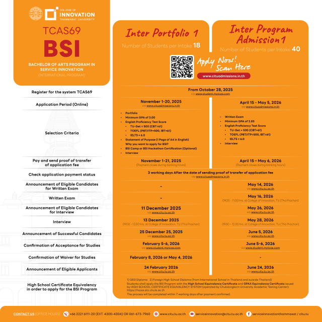 - Announcement on Admission for the Bachelor of Arts Program in Service Innovation (International Program) for an Academic Year 2026 (B.E. 2569) College of Innovation, Thammasat University